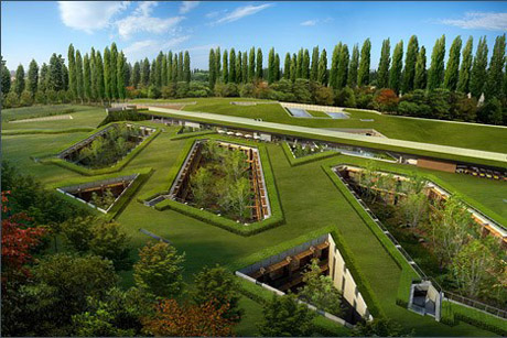 英國薩里地下綠化帶酒店 英國薩里赫斯哈姆高爾夫俱樂部的地下五星級酒店由ReardonSmith建筑師事務所設計,酒店內建有豪華溫泉會所以及高爾夫設施。為了防止不必要的土地開發,英國建立了綠化帶。通過棲身地下這種方式,這家五星級酒店滿足了有關城市發展的限制條件。此外,這一設計也同樣能夠降低對交通流量的影響。由于地上建筑棲身于現有林地之內,附近當地居民的視野不會受到影響,可以盡情欣賞那不可觸摸的自然景色。 10.北京創意區綠化帶