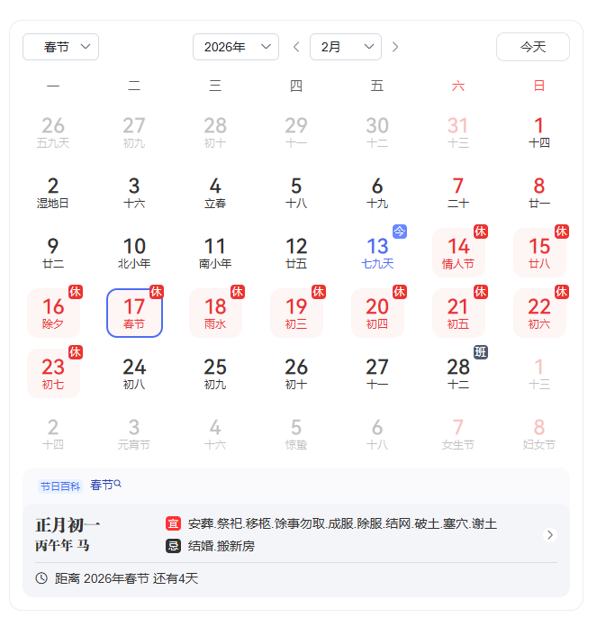 中鐵城際2026年春節放假
