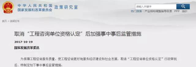 2017年10月18日,國家發(fā)改委根據(jù)《國務(wù)院關(guān)于取消一批行政許可事項的決定》(國發(fā)〔2017〕46號),正式取消了兩項行政許可事項,分別為:(1)工程咨詢單位資格認(rèn)定;(2)跨省發(fā)電、供電計劃和省級發(fā)電、供電計劃備案核準(zhǔn)。