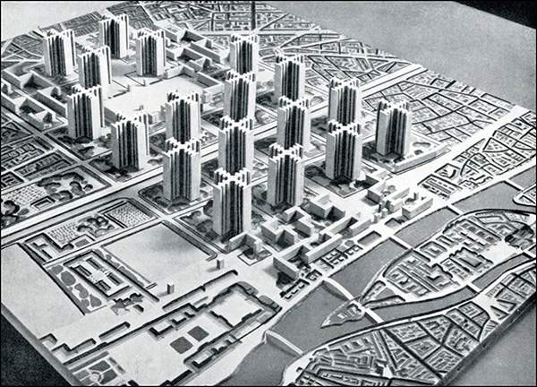 機(jī)械系統(tǒng)論下的功能主義城市意象。柯布西耶,伏瓦生規(guī)劃,1922-1925。