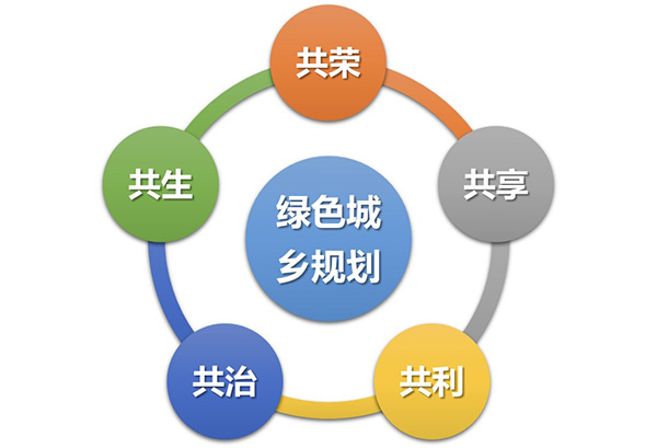 綠色城鄉(xiāng)規(guī)劃的目標(biāo):建設(shè)“共生、共榮、共享、共利、共治”的理想社會(huì)。