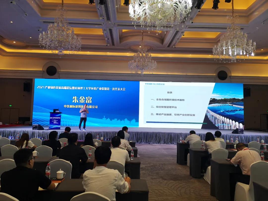 作為會議嘉賓,中鐵城際規(guī)劃建設(shè)有限公司高級工程師朱金富博士參會并作了《全生命周期環(huán)境技術(shù)服務(wù)及智慧管理平臺》的專題報告,對中鐵城際生態(tài)環(huán)境設(shè)計研究院在環(huán)保治理領(lǐng)域中的核心技術(shù)優(yōu)勢及綜合智慧管理平臺做了概況介紹。