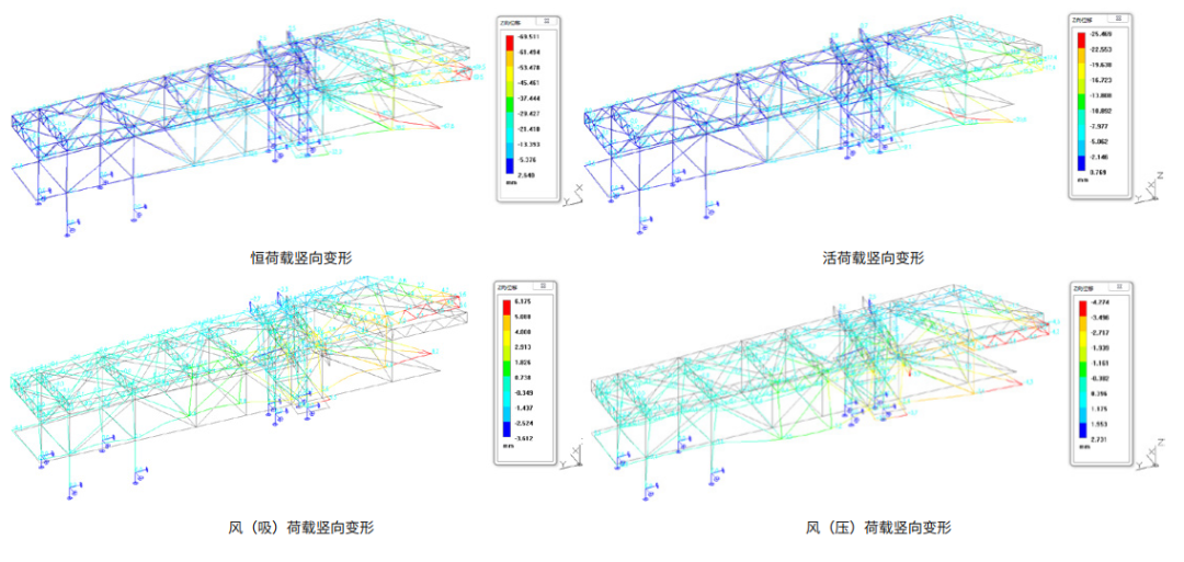大懸梁和受力支點偏心為結構特點,以風荷載、豎向荷載控制為主,主梁采用鋼結構框架,經分析論證,建筑物的抗風能力能夠防范 12 級以上的臺風。
