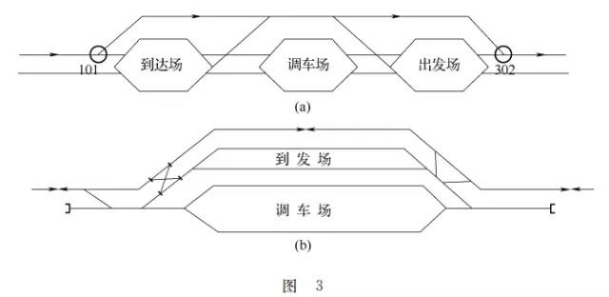圖3(b)中的通過(guò)外包線雖然看起來(lái)曲曲彎彎,但它確實(shí)是貫穿車(chē)站的正線。
