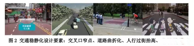 因此,在城市支路級(jí)別道路改造中,我們引入了城市交通穩(wěn)靜化(Traffic calming)理念,通過(guò)壓縮機(jī)動(dòng)車道寬度、設(shè)置道路線型曲折化、縮小轉(zhuǎn)彎半徑以及路面鋪裝材料變化等措施,減少社區(qū)穿越性交通,實(shí)現(xiàn)對(duì)車速的管控,以保障居民出行及活動(dòng)安全。
