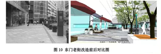 ● 東門老街:機(jī)動(dòng)車道由10 米壓縮至6 米,兩側(cè)人行道分別從5 米加寬至7 米,從8米加寬至10米。