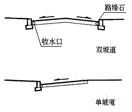 路面兩側不設高出的路緣石,而有保護路面的路肩,路肩外設明溝排除道路及兩側建筑用地的雨水;