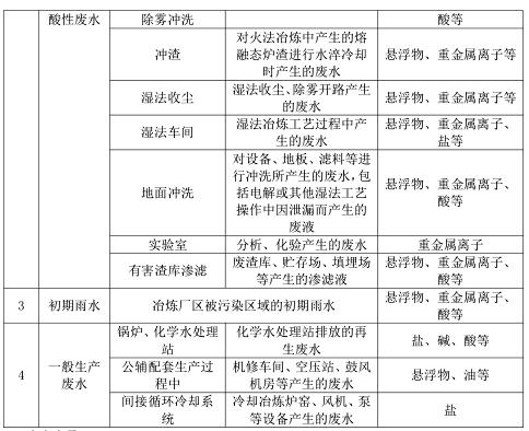 鉛冶煉廢水來源與分類見表1。