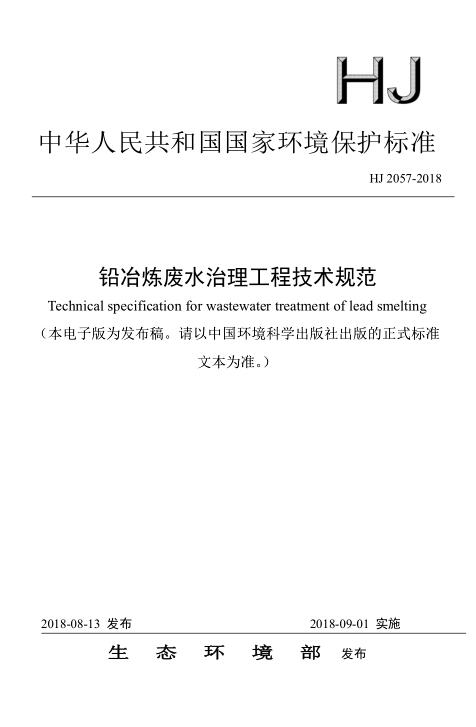 為貫徹《中華人民共和國(guó)環(huán)境保護(hù)法》、《中華人民共和國(guó)水污染防治法》等法律法規(guī),防治環(huán)境污染,改善生態(tài)環(huán)境質(zhì)量,規(guī)范鉛冶煉廢水治理工程的建設(shè)與運(yùn)行管理,制定本標(biāo)準(zhǔn)。本標(biāo)準(zhǔn)規(guī)定了鉛冶煉廢水治理工程的設(shè)計(jì)、施工、驗(yàn)收、運(yùn)行和維護(hù)等技術(shù)要求。本標(biāo)準(zhǔn)為指導(dǎo)性標(biāo)準(zhǔn)。本標(biāo)準(zhǔn)為首次發(fā)布。