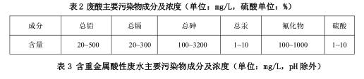 含重金屬酸性廢水主要產(chǎn)生于制酸凈化工段電除霧沖洗、沖渣、濕法收塵、濕法車間、地面沖洗、實(shí)驗(yàn)室、有害渣庫滲濾等,主要污染物有重金屬離子、酸、懸浮物等。