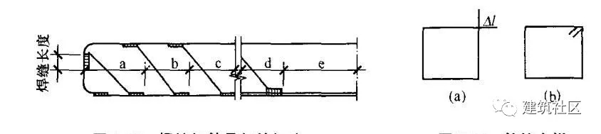 5)圖示法的焊縫應(yīng)采用細(xì)實(shí)線繪制,線段長(zhǎng)1'-2mm,間距為1mm(圖2-59).
