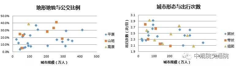 研究發(fā)現(xiàn),除了城市規(guī)模,城市之間的差異體現(xiàn)在許多方面,如城市地理環(huán)境、空間形態(tài)、城市職能、區(qū)位等,這些差異都或多或少地帶來交通特征的差異。尤其是改革開放以來,各城市發(fā)展的速度差異導(dǎo)致發(fā)展階段的差異。城市間的差異直接帶來經(jīng)濟(jì)水平、存量地區(qū)規(guī)模、機(jī)動車擁有、交通設(shè)施水平等的分化,導(dǎo)致不同的出行特征,包括出行距離分布、交通結(jié)構(gòu)、出行目的、時(shí)間分布等。這種差異性不僅體現(xiàn)在城市之間,還體現(xiàn)在城市內(nèi)部不同功能、強(qiáng)度、發(fā)展階段的地區(qū)之間。