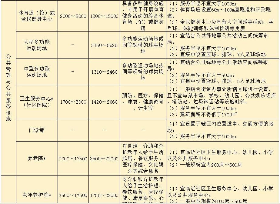 注:1 加*的配套設(shè)施,其建筑面積與用地面積規(guī)模應滿足國家相關(guān)規(guī)劃和建設(shè)標準的有關(guān)規(guī)定;