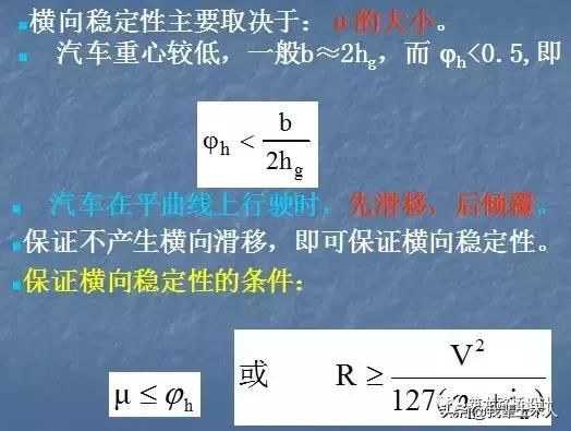 橫向傾覆:汽車在平曲線上行駛時,由于橫向力的作用,使汽車繞外側車輪觸地點產生向外橫向傾覆。