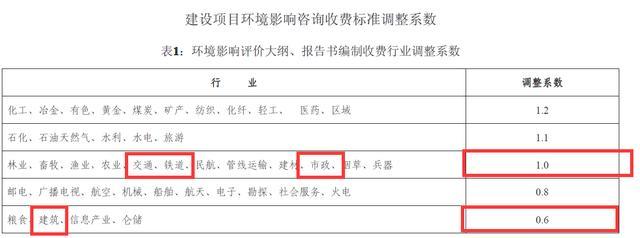 建設(shè)項(xiàng)目環(huán)境影響咨詢收費(fèi)標(biāo)準(zhǔn)調(diào)整系數(shù)