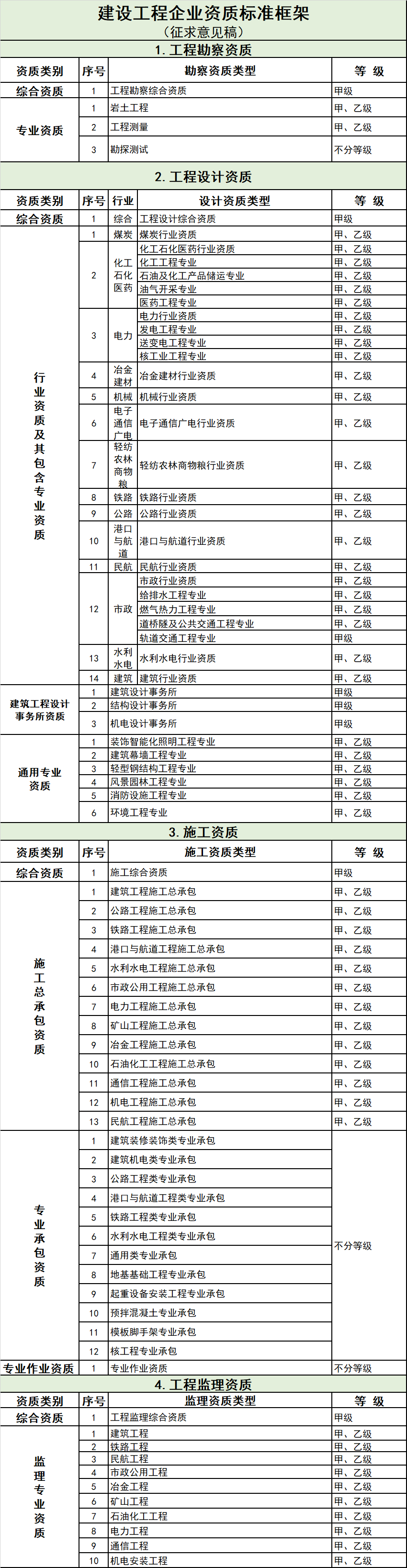 2、建設工程企業資質標準框架(征求意見稿)