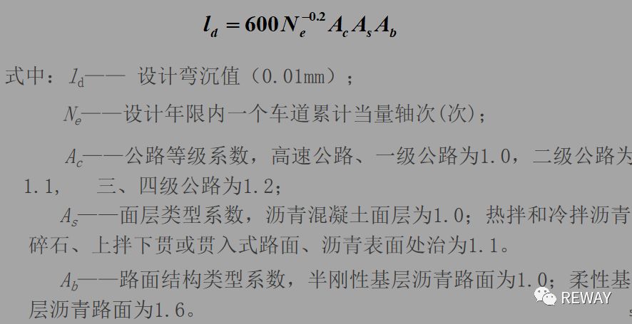 -當(dāng)彎沉在非不利季節(jié)測定時(shí),應(yīng)根據(jù)當(dāng)?shù)亟?jīng)驗(yàn)考慮季節(jié)影響系數(shù)的修正K1。考慮與相關(guān)規(guī)范的關(guān)系,設(shè)計(jì)規(guī)范將竣工彎沉值改為實(shí)測路表面代表彎沉值,竣工彎沉值由相關(guān)規(guī)范確定。另外,實(shí)測路表面代表彎沉值可根據(jù)三倍均方差原則處理個(gè)別過大或過小測點(diǎn),然后再計(jì)算。