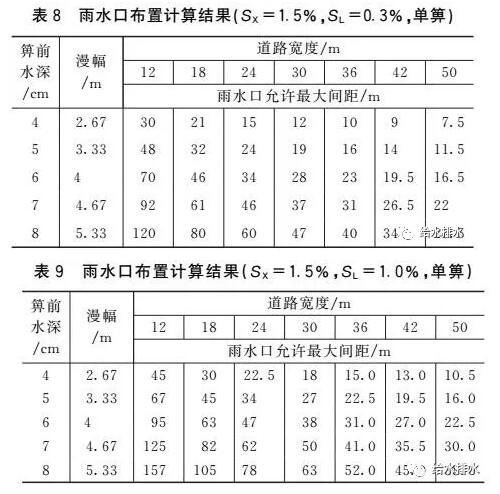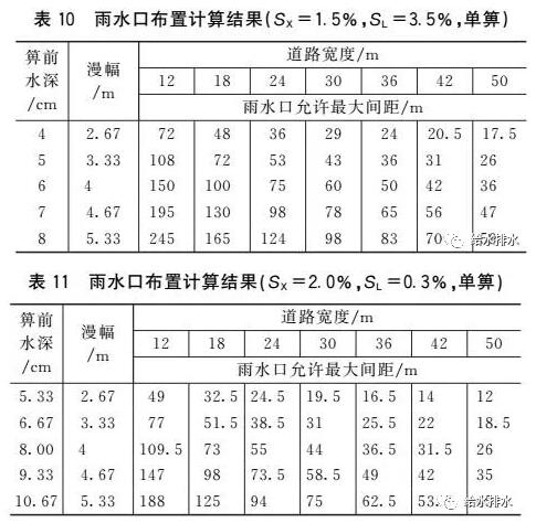 (3)當道路縱坡和漫幅不變時,雨水口允許最大間距隨道路橫坡增大而增大。