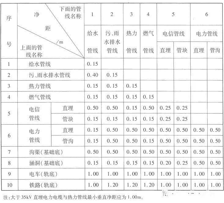 1. 各種工程管線不應(yīng)在垂直方向重疊直埋敷設(shè)