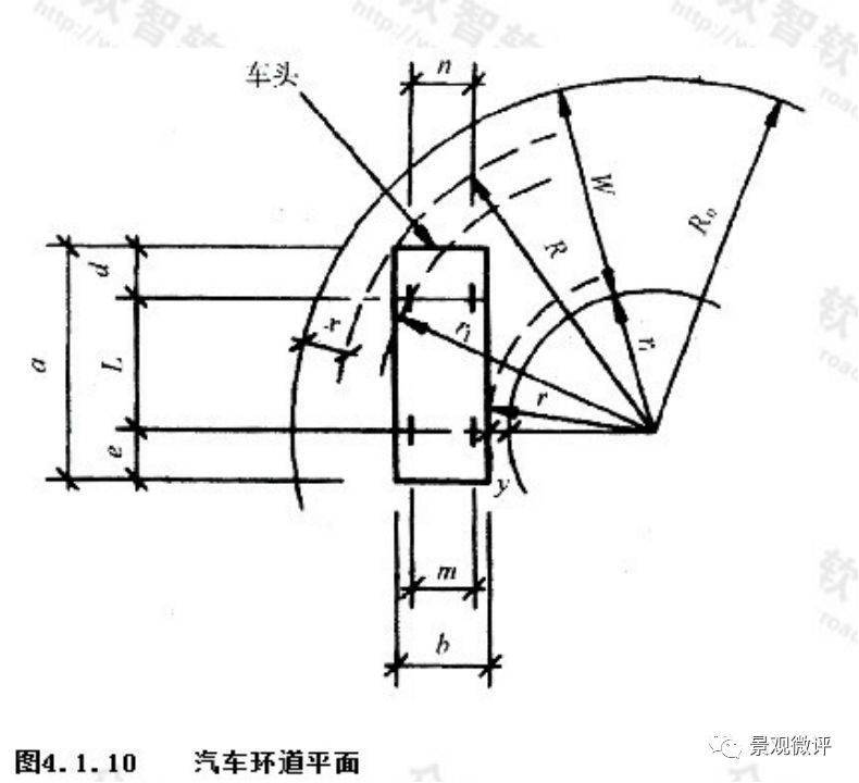 回轉(zhuǎn)軌跡表明當(dāng)汽車回轉(zhuǎn)狀態(tài)下的環(huán)道內(nèi)外半徑不同,則最小道寬尺寸也將不同。