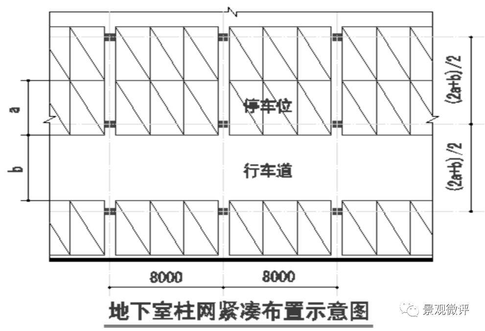1)單建式地庫,停放小型車時不宜采用兩柱間停一輛車的方式,避免柱子過多;而附建式地庫,有時因上部建筑柱網(wǎng)尺寸較小,兩柱間可能停放一輛車。