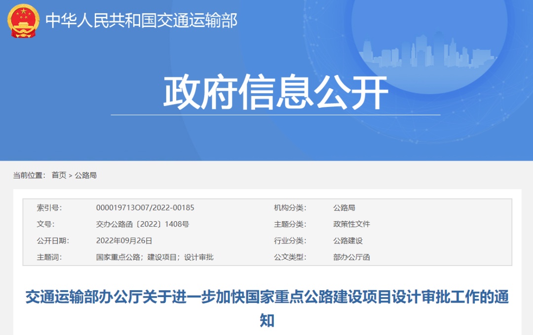 交通運(yùn)輸部:加快國(guó)家重點(diǎn)公路建設(shè)項(xiàng)目設(shè)計(jì)審批工作