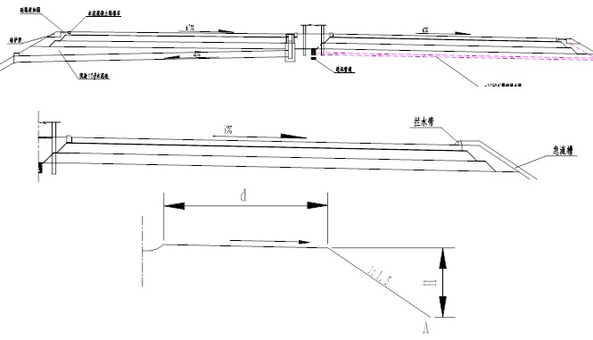 倒虹吸的設置往往是因路基橫跨原有溝渠,且溝渠水位高于路基設計標高,不能按正常條件下設置涵洞,此時采用倒虹吸是可行的方案之一。 渡水槽的設置是因原水道與路基設計標高相差較大,如果路基兩側地形有利,或當地確有必要,可設簡易橋梁,架設水槽或管道,從路基上部跨越,以勾通路基兩側的水流。