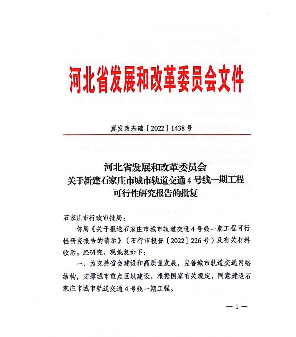 近日,石家莊市軌道交通4號線一期工程可行性研究報告獲河北省發(fā)改委批復(fù)。4號線一期工程可研的批復(fù)標(biāo)志著石家莊軌道交通二期規(guī)劃建設(shè)取得了突破性進(jìn)展。
