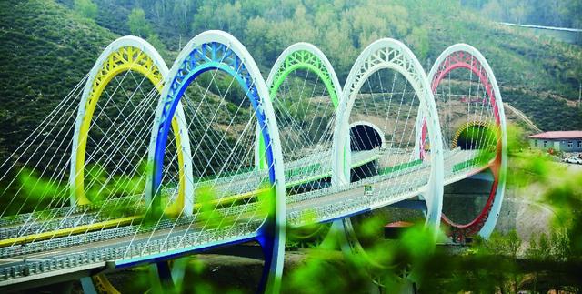 沿線地形復雜,施工場地受限,橋梁、隧道數量多,橋隧比達56%,局部路段橋隧比高達90%以上,其中松山特長隧道長9.2km,為華北地區最長公路隧道。
