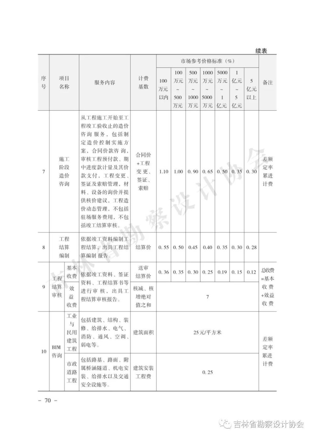 為進(jìn)一步維護(hù)公平有序的市場(chǎng)環(huán)境,引導(dǎo)勘察設(shè)計(jì)市場(chǎng)健康發(fā)展,近日,吉林省工程勘察設(shè)計(jì)行業(yè)協(xié)會(huì)發(fā)布地方工程勘察設(shè)計(jì)收費(fèi)導(dǎo)則,對(duì)工程勘察、建筑工程、全過(guò)程工程咨詢(xún)、市政工程設(shè)計(jì)收費(fèi)進(jìn)行規(guī)定。