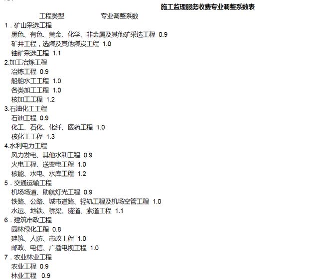 (2)施工監理服務收費基準價=施工監理服務基價×專業調整系數×工程復雜程度調整系數×高程調整系數