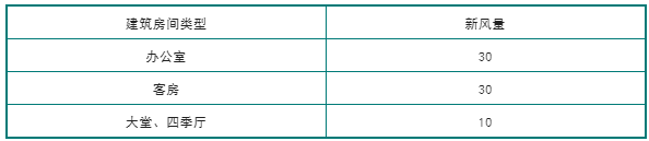 高密人群建筑按不同的人員密度依每人所需最小新風(fēng)量確定;