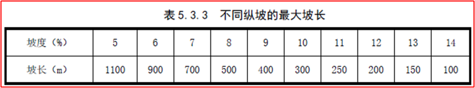 《規(guī)范》表5.3.3 不同縱坡的最大坡長