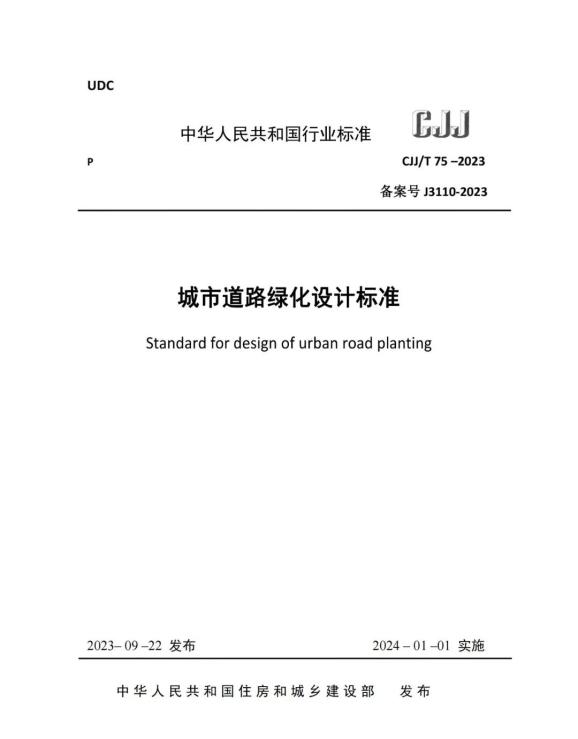 近日,住房和城鄉(xiāng)建設(shè)部批準和正式公布了由中國城市規(guī)劃設(shè)計研究院主持修編的行業(yè)標準《城市道路綠化設(shè)計標準》(編號CJJ/T75-2023),該標準將于2024年1月1日實施。