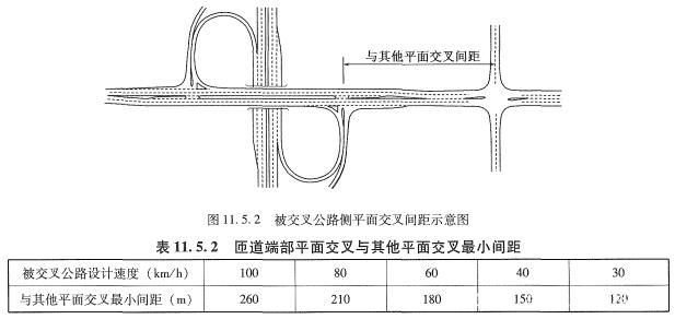 《細則》11.5.2條規定兩相鄰平面交叉的最小間距,包括設置加減速車道和交織車道,該規定值一般大于安全停車視距。