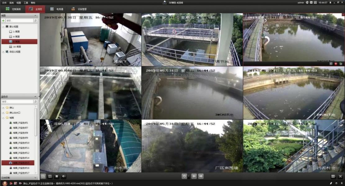 通過在水廠、排污設備、進出水口等設施附近加裝攝像頭,實現對重要位置的視頻監控。使用硬盤刻錄機接入排污企業排水口視頻監控數據,實現視頻監控數據的輪詢顯示、操作以及歷史的查詢回放等功能。