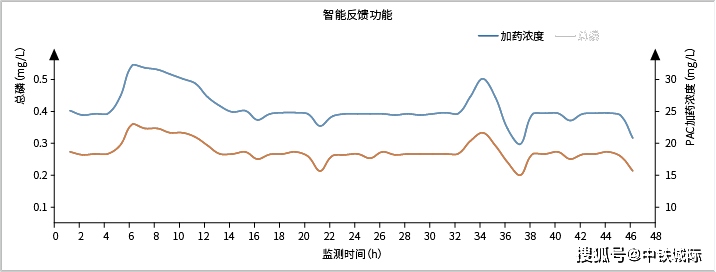 智能反饋功能可根據(jù)出水 SS 、 PH 等相關(guān)指標(biāo)的高低來(lái)判斷加藥量是否合適,若實(shí)際出水監(jiān)測(cè)值和設(shè)計(jì)值出現(xiàn)較大偏差,程序會(huì)自動(dòng)修正加藥量,達(dá)到合理的出水指標(biāo)。