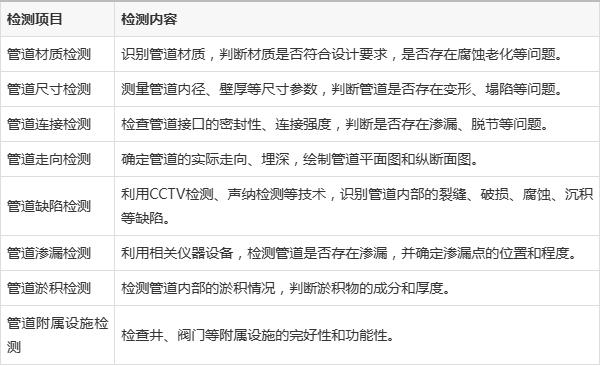 地下管網(wǎng)檢測項(xiàng)目涵蓋以下方面: